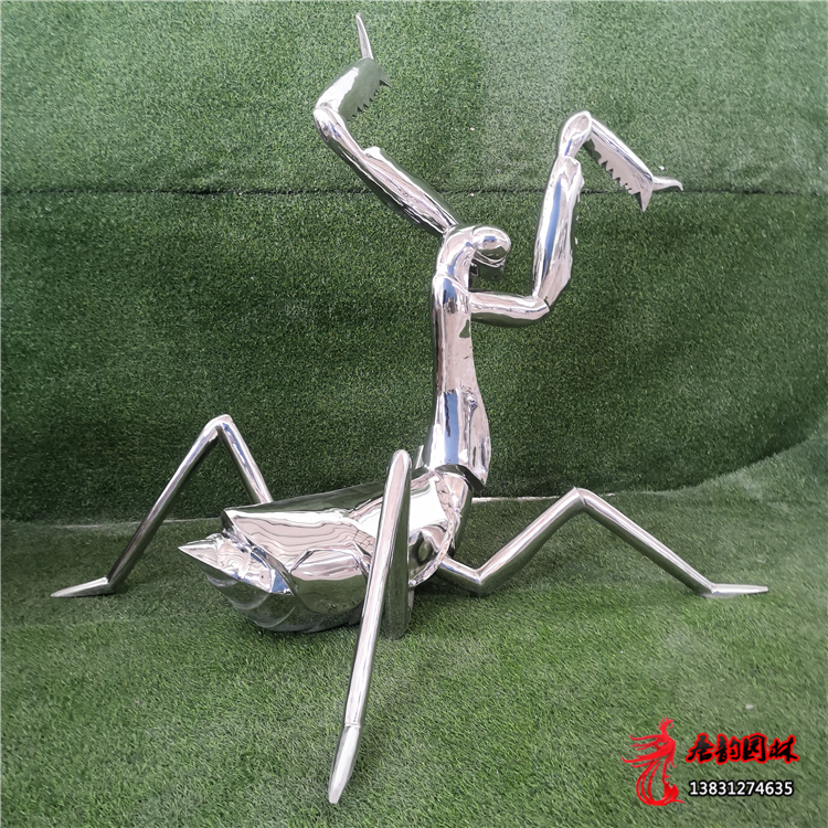 Stainless steel mantis sculpture