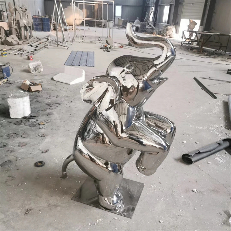 Mirror stainless steel elephant sculpture