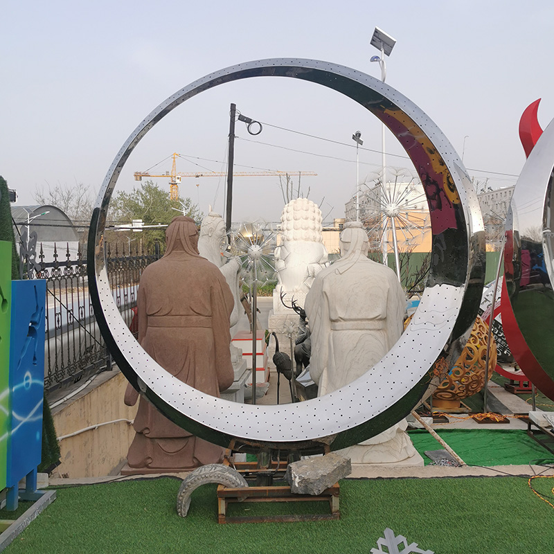 Stainless steel circular sculpture, real estate landscape circular sculpture