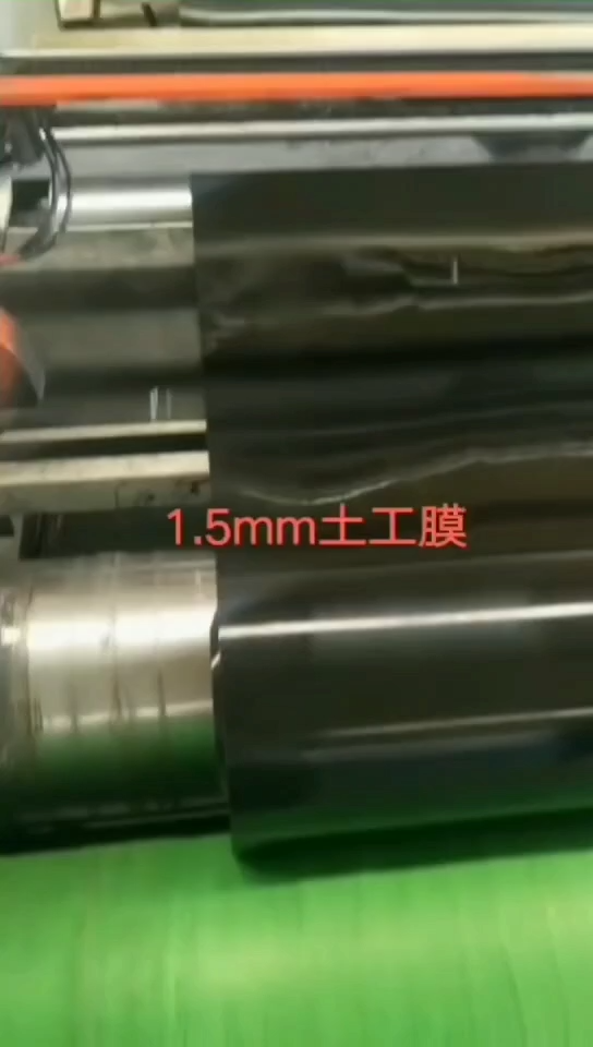Smooth new material 1.5mm thick HDPE geomembrane production into roll video