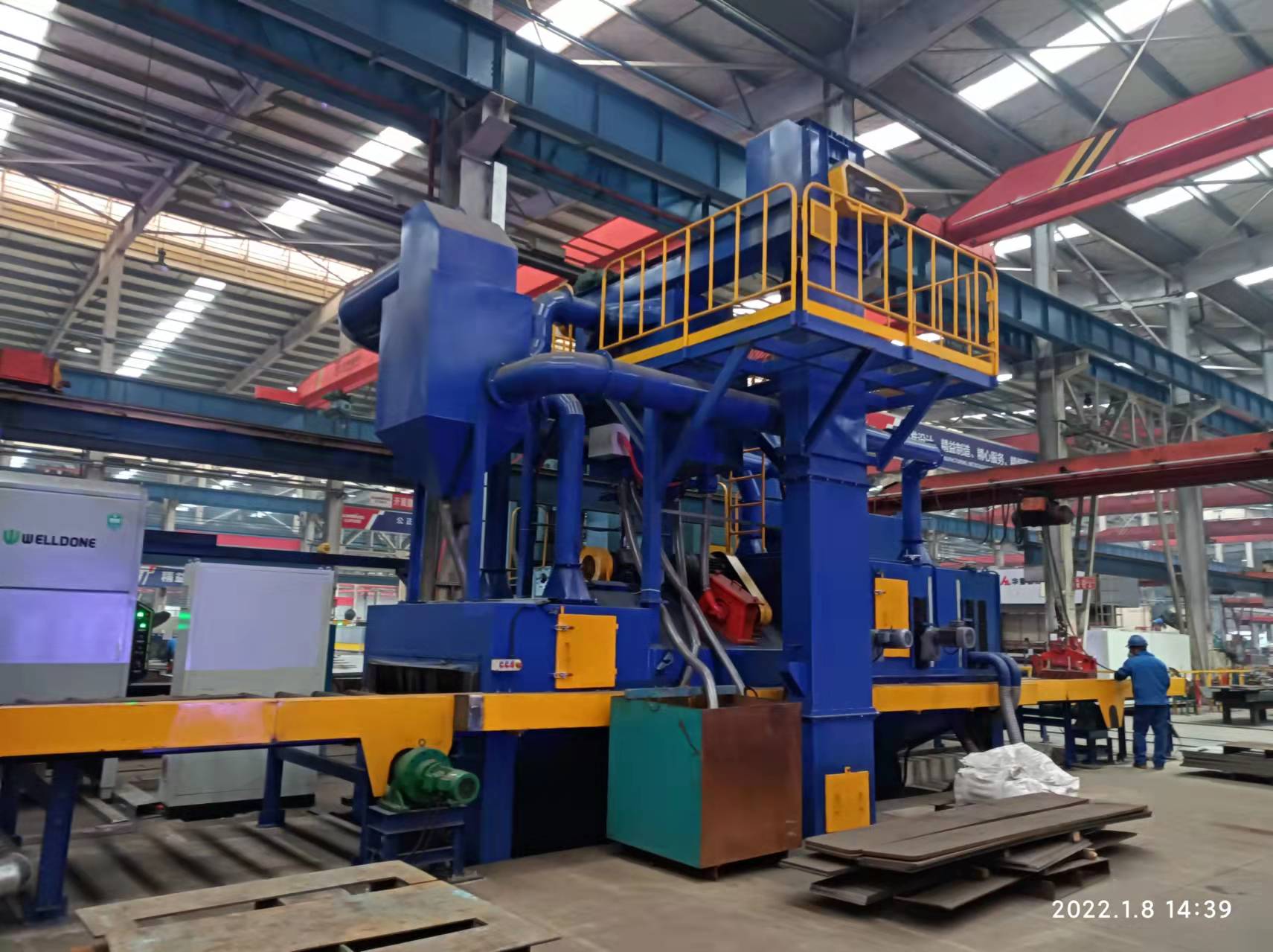 Through type steel plate profile shot blasting cleaning machine